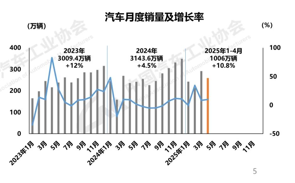 5月12日,中国汽车工业协会(简称“中汽协”)召开月度信息沟通会。根据中汽协统计,2025年1至4月份,中国汽车产销量分别完成1017.5万辆和1006万辆,同比分别增长12.9%和10.8%。这是我国汽车产销量历史上首次前4个月产销双双突破1000万辆。
