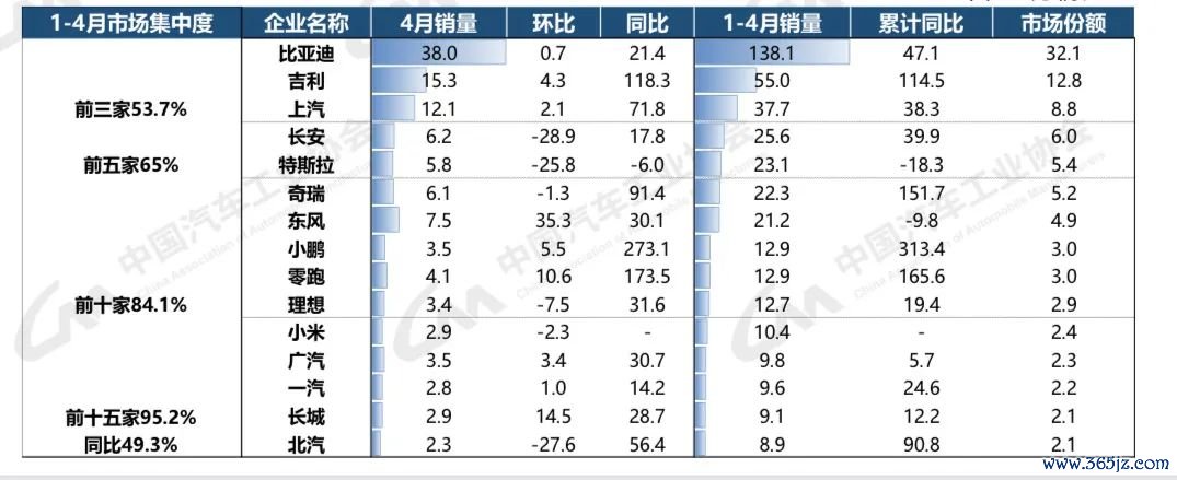 比亚迪和吉利控股1—4月产销增速显著